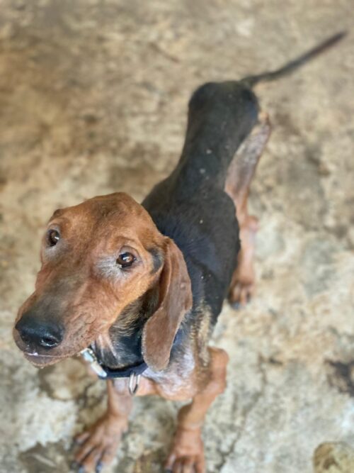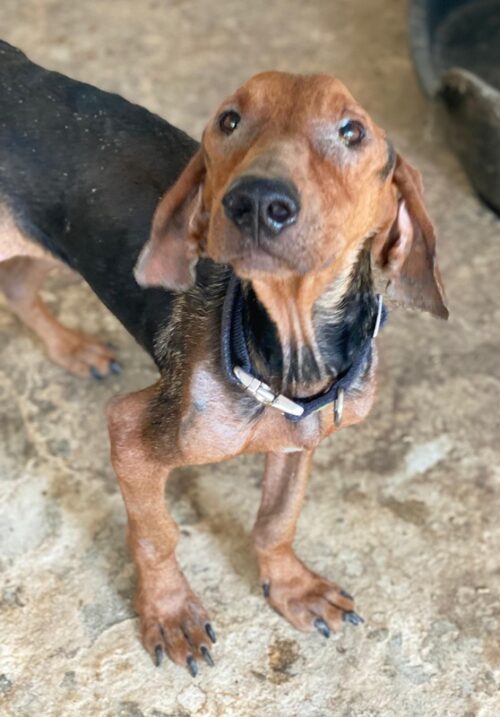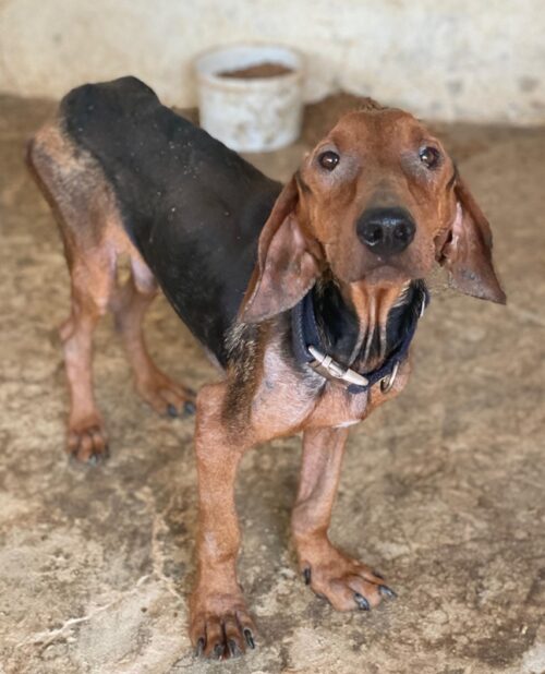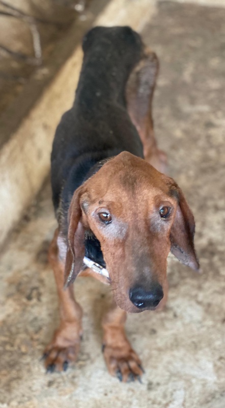Abaluga ist ein ganz besonderer Schatz. Trotz seines schlechten Zustands hat er sich sein freundliches und aufgeschlossenes Wesen bewahrt. Er begegnet Menschen mit offenem Herzen, ist zutraulich, verschmust und sucht stets die Nähe zu seinen Bezugspersonen. Jede streichelnde Hand und jedes liebevolle Wort genießt er in vollen Zügen – als wüsste er genau, wie kostbar diese Zuwendung ist. Auch optisch ist Abaluga ebenso einzigartig wie sein Charakter: Mit seinem zarten Körperbau, dem markanten schwarz-braunen Fell und seinen treuen Augen zieht er sofort die Aufmerksamkeit auf sich. Was sich Abaluga wünscht? Ein liebevolles Zuhause mit Menschen, die ihm Sicherheit, Geborgenheit und die nötige Zeit geben, in Ruhe anzukommen. Ein weiches Plätzchen zum Schlafen, tägliche Streicheleinheiten und Spaziergänge voller gemeinsamer Entdeckungen – das wäre sein größtes Glück.