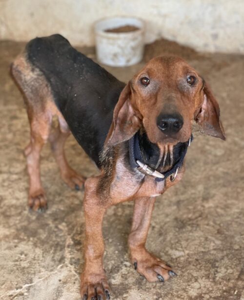 Abalugas Geschichte beginnt in den abgelegenen Bergen Griechenlands – mitten im Nirgendwo. Dort wurde er allein, geschwächt und verlassen aufgefunden. Offenbar hatte man ihn zum Sterben ausgesetzt. Ein Abdruck an seinem Hals deutet darauf hin, dass er früher ein Halsband trug – und womöglich einst ein Zuhause hatte. Warum er zurückgelassen wurde, bleibt ein Rätsel. Doch Abaluga hatte Glück im Unglück: Er wurde rechtzeitig entdeckt und lebt nun auf einer privaten Pflegestelle in Serres, wo er nun versorgt und aufgepäppelt wird. Dort wartet er auf ein Zuhause, in dem er endlich ankommen darf – und bedingungslos geliebt wird.