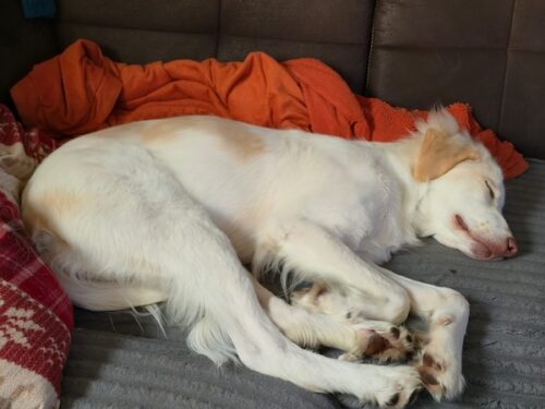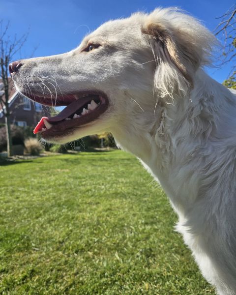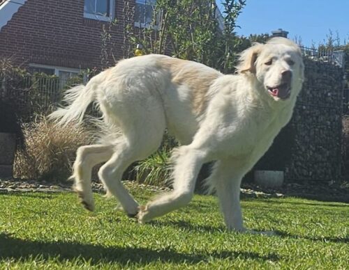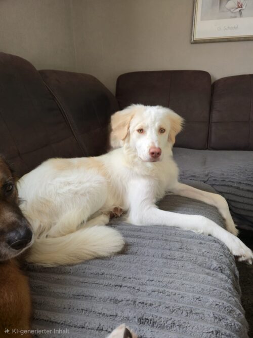 Bei Balda handelt es sich um eine bildhübsche Hundedame mit einem sehr weichen, cremefarbenen Fell. Sie hat ausdrucksstarke helle Augen. Inzwischen ist sie zu einer stattlichen Hundedame herangewachsen.
