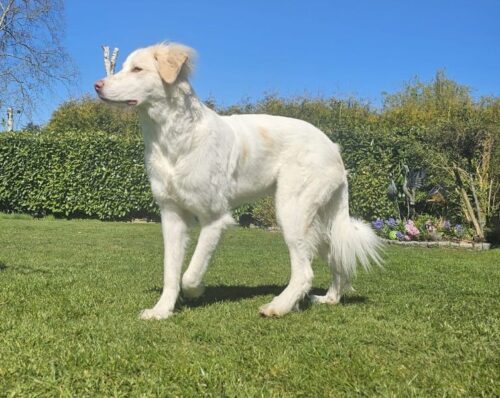 Es kann sich bei ihr aufgrund optischer Merkmale um einen Herdenschutzhund-Mischling handeln. Gerne informieren wir Sie in einem persönlichen Gespräch genauer über deren besondere Eigenschaften.