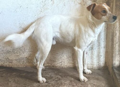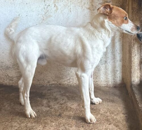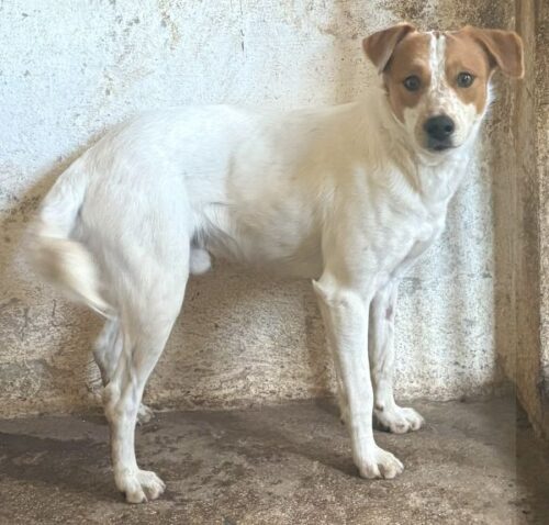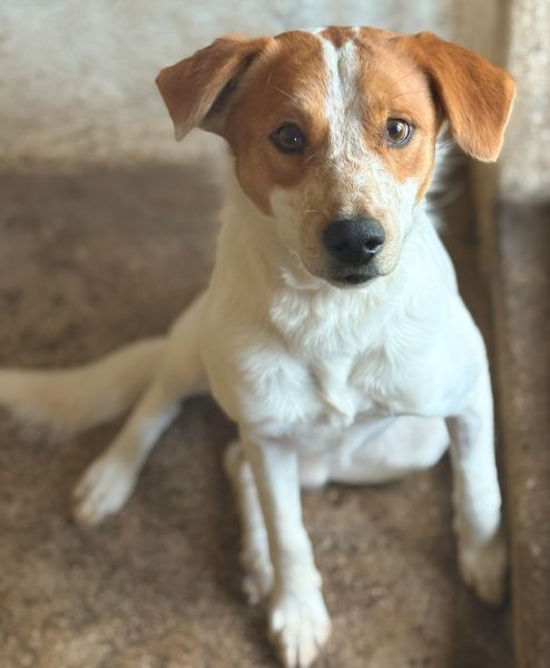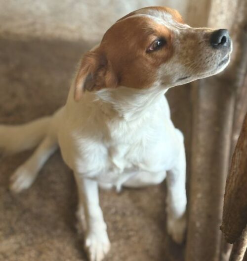 Der eher kleine Rüde ist überwiegend weiß, abgesehen von den warmen, kastanienbraunen Abzeichen, die seinen Kopf und seine Ohren zieren. Eins ist sicher: Benschi hat eine wunderschöne Seele. Er zeigt sich äußerst lieb und ist freundlich zu allen. Sanft sucht er den Kontakt zu Menschen und lässt sich unheimlich gerne kraulen. Er ist sehr neugierig und beginnt vorsichtig, seine Umgebung zu erkunden. Benschi ist noch kein Wirbelwind, sondern ein ruhiger, aufmerksamer Beobachter. Er braucht eine Familie, die ihm mit Geduld und sanfter Führung hilft, seine Unsicherheit abzulegen. Ein gutes Training, welches bei Bedarf auch professionell unterstützt werden kann, ist besonders wichtig für Benschi, damit er Schritt für Schritt lernen kann, was es heißt, ein Familienhund zu sein. Mit einer dicken Portion Liebe und positiver Verstärkung wird dieser Schatz bestimmt bald zeigen, wie viel Lebensfreude in ihm steckt.