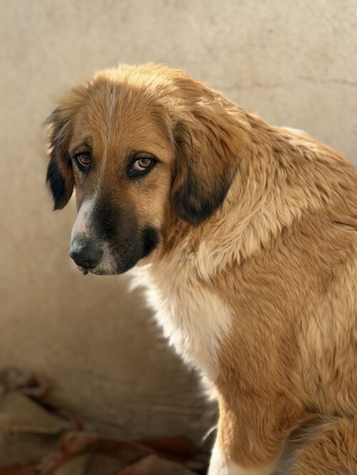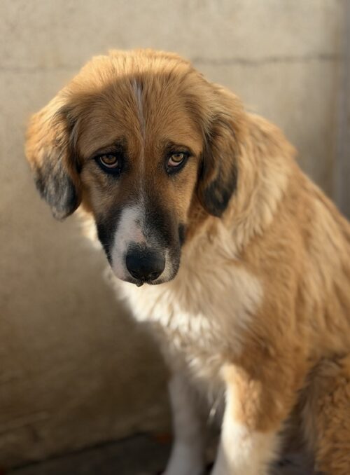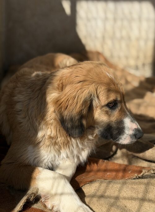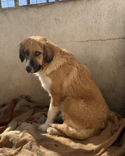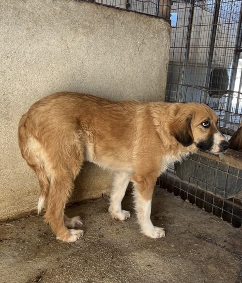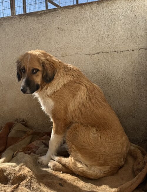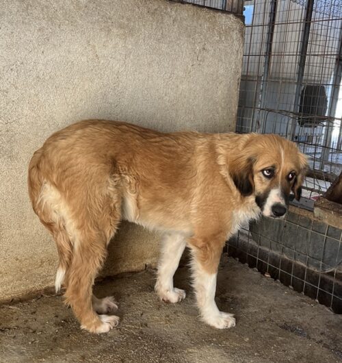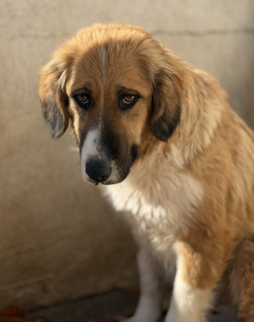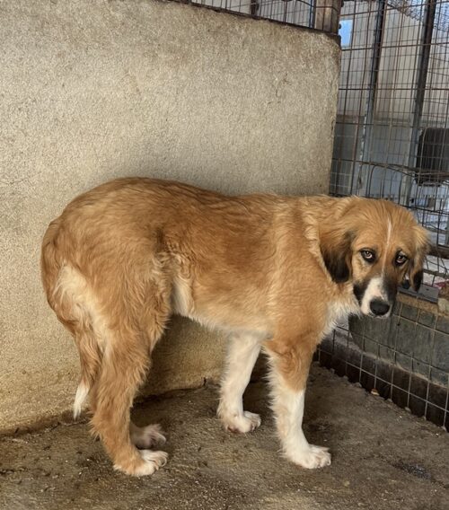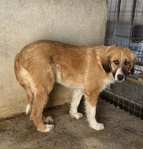 Die junge Hündin ist eine hübsche, große Hündin mit warmem, goldbraunem Fell und weißen Abzeichen an Brust, Beinen und im Gesicht. Ihr sanfter Blick spiegelt ihre sensible Seele wider. Sie ist verträglich mit anderen Hunden und zeigt sich im Tierheim ruhig und freundlich, braucht jedoch etwas Zeit, um Vertrauen zu fassen und aufzubauen. Mit Geduld, Einfühlungsvermögen und liebevoller Führung kann sie sich zu einer treuen Begleiterin entwickeln, die die Nähe ihrer Menschen sehr zu schätzen weiß.