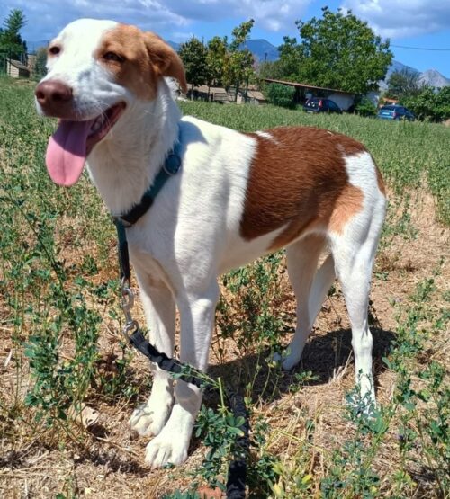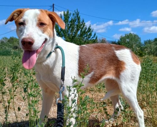 Junghündin Doria hat mit circa 45 Zentimetern Schulterhöhe eine schöne Größe und ist daher für alle interessant, die einen eher kleineren Hund suchen. Sie hat ein hübsches weiß-braunes Fellkleid und schaut derzeit noch etwas schüchtern in die Kamera. Zwar kennt sie den Kontakt mit Menschen, zeigt sich jedoch noch zurückhaltend. Der laute Zwingeralltag ist sehr stressig für sie und daher hoffen wir sehr, dass Doria diesen bald hinter sich lassen und in einer eigenen Familie zur Ruhe kommen kann. Mit den anderen Hunden auf ihrer Pflegestelle ist sie sehr freundlich und sanft im Kontakt. Man übt dort mit ihr bereits das Laufen an der Leine, welches ihr von Mal zu Mal besser gefällt. Für Doria wünschen wir uns liebevolle Menschen, die ihr viel Zeit geben, um im neuen Zuhause anzukommen. Sie soll sich in Ruhe an ihr neues Lebensumfeld gewöhnen dürfen und ganz ohne Erwartungen alles kennenlernen. Vieles wird sicher neu für sie sein und es ist wichtig, ihr Sicherheit und Stabilität zu schenken. Ist das Eis gebrochen, wird sie bestimmt zeigen können, was für eine tolle Hündin sie ist.