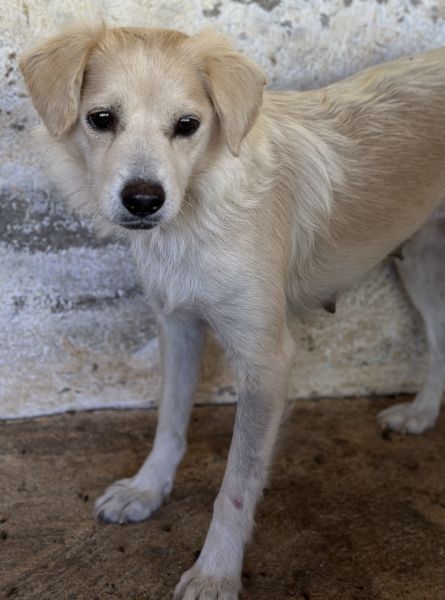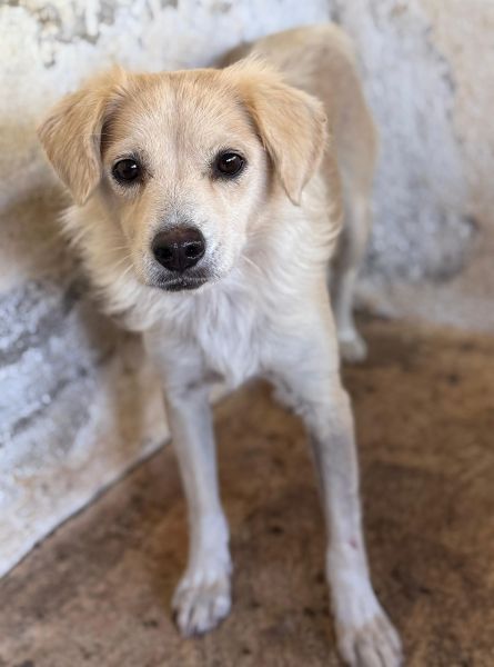 Eyra ist eine kleine, goldige Hündin mit weichem cremefarbenem Fell und einer zarten Seele. Sie ist eine liebevolle und süße Hündin, die jedoch etwas Zeit braucht, um Vertrauen zu fassen. In neuen Situationen zeigt sie sich zunächst vorsichtig und zurückhaltend – doch wenn man ihr Ruhe und Geduld schenkt, öffnet sie sich langsam und zeigt ihre sanfte, liebenswerte Seite. Mit anderen Hunden ist Eyra sehr verträglich. Momentan lebt sie auf einer Pflegestelle in Griechenland, wo sie zwar in Sicherheit ist, sich aber noch nicht ganz wohlfühlt – das Umfeld ist ihr manchmal einfach zu viel. Für Eyra wünschen wir uns ein ruhiges, liebevolles Zuhause, in dem sie in ihrem eigenen Tempo ankommen darf und Geborgenheit findet. Menschen, die ihr Zeit geben, Vertrauen aufzubauen, und sie so annehmen, wie sie ist. Mit Geduld und Zuneigung wird Eyra zu einer treuen Begleiterin, die ihr Herz Stück für Stück verschenkt. Haben Sie ein Herz für Eyra? Dann freuen wir uns über Ihre Nachricht.
