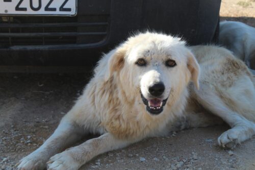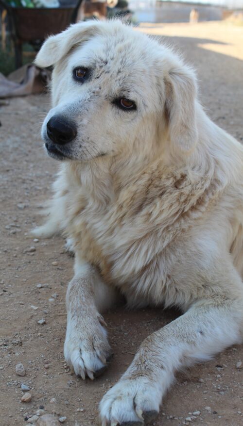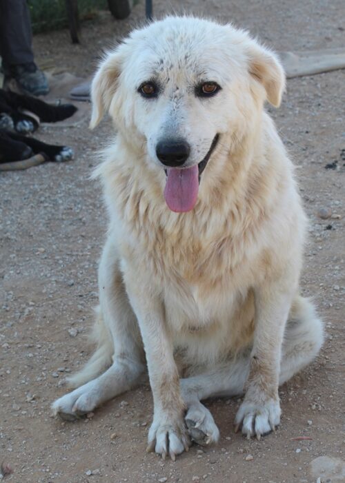 Felicitas, geb. ca. 12/2021, lebt in GRIECHENLAND, auf einem Gelände, auf dem die Hunde notdürftig versorgt werden
