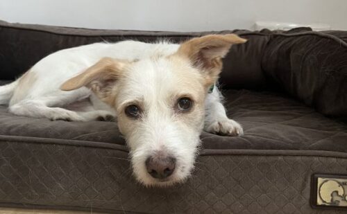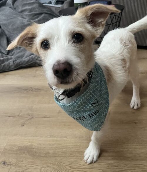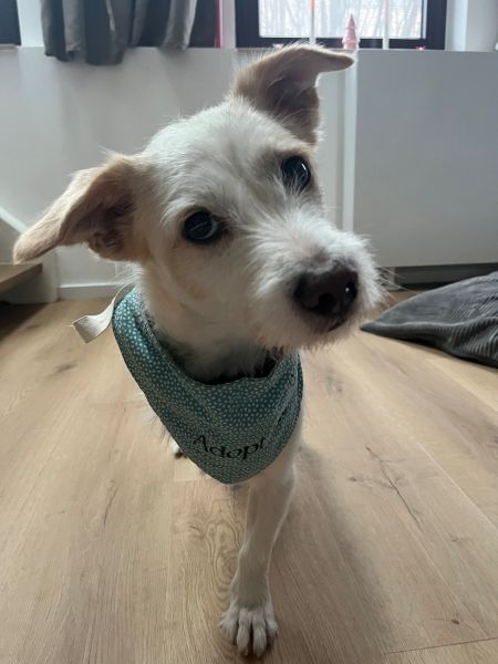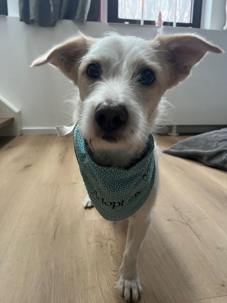 Terrierfans, aufgepasst – hier kommt unser Frex! Der kleine Kerl hat ein weiß-beigefarbenes Fell und süße Knicköhrchen. Er lässt sich durch sein Handicap überhaupt nicht einschränken und möchte am liebsten überall mit hin und möglichst viel entdecken. Natürlich muss man ihn momentan noch etwas zurückhalten, da er noch Kondition und Kraft aufbauen muss. Wenn ihn etwas verunsichert, bellt er erstmal, meistert jedoch viele neue Situationen mit Bravour.