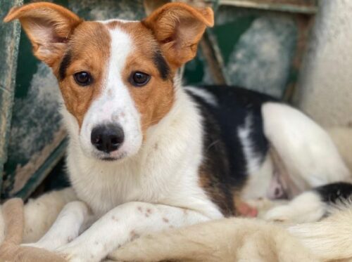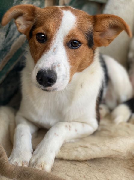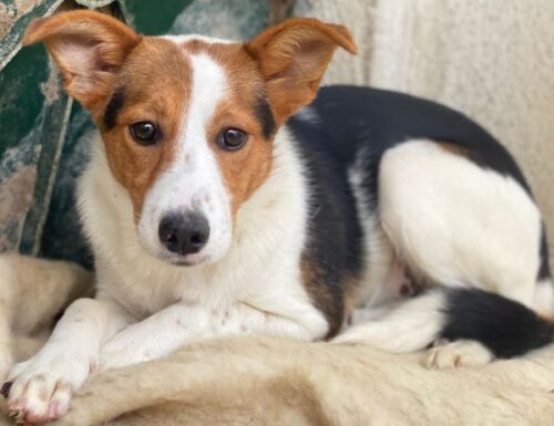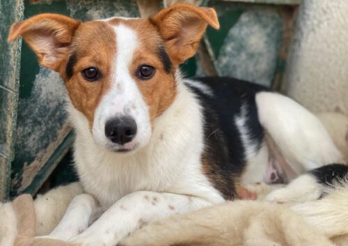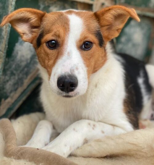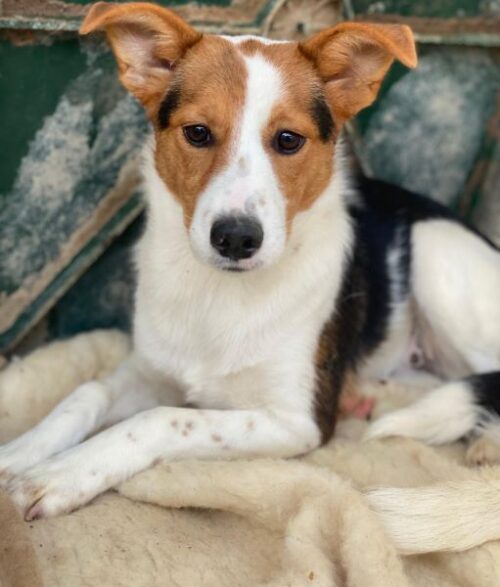 Freydis ist eine dreifarbige Hündin in einer sehr angenehmen Größe von etwa 40 cm. Ihr tolles Fellkleid in Schwarz-Weiß-Braun und die großen Ohren sind einfach nur zu niedlich. Sie wird von unseren Kollegen vor Ort als freundlich und verträglich beschrieben – sowohl Menschen als auch Hunden gegenüber. Anfangs benötigt die süße Maus noch ein bisschen Zeit, um aufzutauen, doch das nehmen wir ihr absolut nicht übel. Schließlich wusste sie bisher nie so richtig, woran sie ist. Alles in allem ist Freydis ein kleiner Goldschatz, der nun einfach mal auf die richtigen Menschen treffen muss. Für Freydis wünschen wir uns liebevolle und souveräne Menschen, die Freude am Training mit einem Hund haben und ihr die Welt zeigen möchten, damit sie ihre Unsicherheiten ablegen kann.