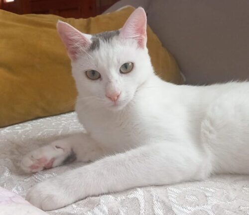Gizmo ist ein wunderschöner, weißer Kater mit zarten grauen Flecken auf dem Kopf und am Schwanz – ein echter Hingucker! Sein neugieriger Blick und sein sanftes Wesen machen ihn zu einem ganz besonderen Kater. Er liebt es, zu spielen und seine Umgebung zu erkunden, genießt aber genauso gerne ausgiebige Kuscheleinheiten. Auf seiner Pflegestelle lebt er aktuell verträglich mit anderen Katzen zusammen. Gizmo ist freundlich, aufgeschlossen und bringt alles mit, was man sich von einem jungen Kater wünscht – Lebensfreude, Charme und jede Menge Liebe im Gepäck. Wir wünschen uns für Gizmo, dass er genügend Zeit und Geduld bekommt, um sich in seinem neuen Zuhause in Ruhe einzuleben.