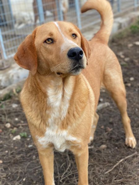 Hector ist ein bildschöner Rüde mit hellbraunem Fellkleid und weißen Akzenten auf der Brust. Er hat helle, freundliche Augen und einen aufgeweckten Blick. Der stattliche Rüde ist ein sehr charmanter Kerl und kann sowohl optisch als auch charakterlich punkten. Von unseren HelferInnen wird er als verschmust und verspielt beschrieben. Außerdem ist er sehr menschenbezogen und freut sich über Streicheleinheiten. Mit den anderen Hunden in seinem Gehege verträgt er sich derzeit gut.