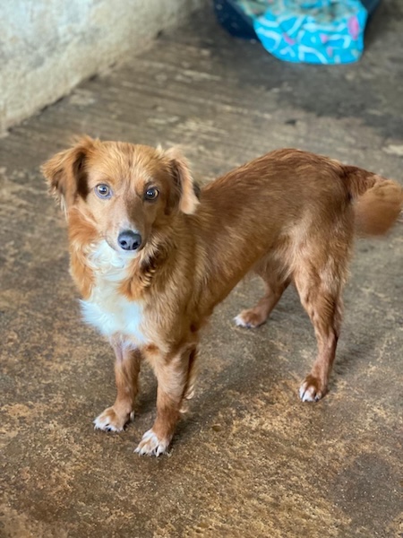 Klara ist eine junge Hündin mit wunderschönem fuchsbraunem Fell und einer weißen Brust. Ihr niedlicher Hundeblick geht direkt ins Herz und macht es schwer, ihr zu widerstehen. Mit einer Größe von etwa 35–40 cm hat sie eine angenehme, handliche Größe und eignet sich wunderbar als Begleiterin für viele Lebenssituationen. Vom Wesen her zeigt sich Klara freundlich, aufgeschlossen und sehr menschenbezogen. Sie freut sich über Aufmerksamkeit und begegnet Menschen offen und neugierig. Auch mit anderen Hunden versteht sie sich bestens und lebt harmonisch in der Hundegruppe auf ihrer Pflegestelle. Da Klara noch jung ist, möchte sie natürlich noch vieles lernen. Für sie wünschen wir uns Menschen, die Freude daran haben, gemeinsam mit ihr die Welt zu entdecken und ihr mit Geduld und liebevoller Konsequenz das Leben als Familienhund näherzubringen. Mit ihrer freundlichen und offenen Art wird sie sich sicher schnell in ihrem neuen Zuhause einleben. Wenn Sie Klara ein liebevolles Zuhause schenken möchten, freuen wir uns sehr auf Ihre Anfrage!