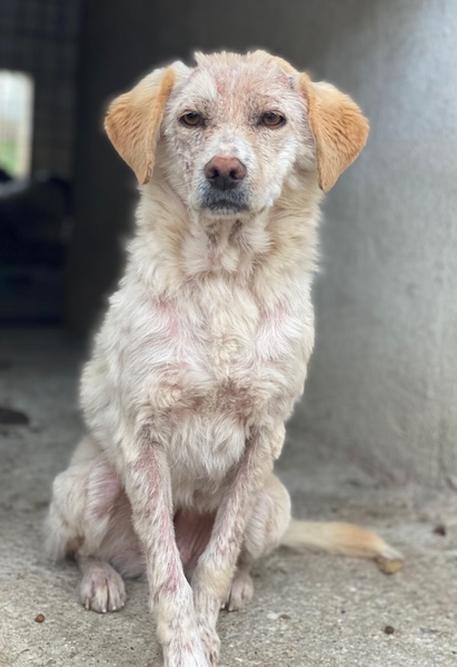 Die hübsche Hündin hat in der letzten Zeit enorme Fortschritte gemacht und zeigt sich mittlerweile von einer sehr freundlichen und lieben Seite. Während sie zu Beginn noch große Angst vor den Menschen hatte, genießt sie heute die Streicheleinheiten sichtlich und zeigt ihre extreme Freude, sobald ihre Bezugsperson erscheint. Auch körperlich ist sie auf dem Weg der Besserung: Ihr Fellkleid in hellem Beige mit den charmanten dunklen Abzeichen im Gesicht erholt sich zusehends und gewinnt stetig an Glanz. Besonders ihre ausdrucksstarken, dunklen Augen und die aufmerksame Mimik verleihen ihr eine ganz besondere Ausstrahlung. Aktuell zeigt sie sich zudem sehr verträglich mit ihren Artgenossen vor Ort und teilt sich ihren Bereich problemlos mit ihnen.