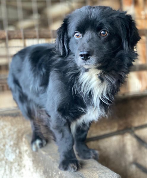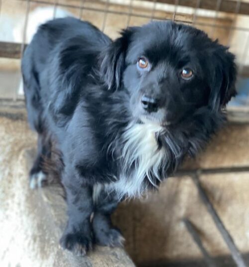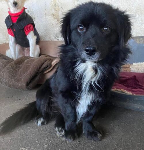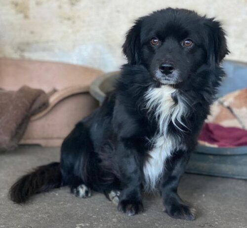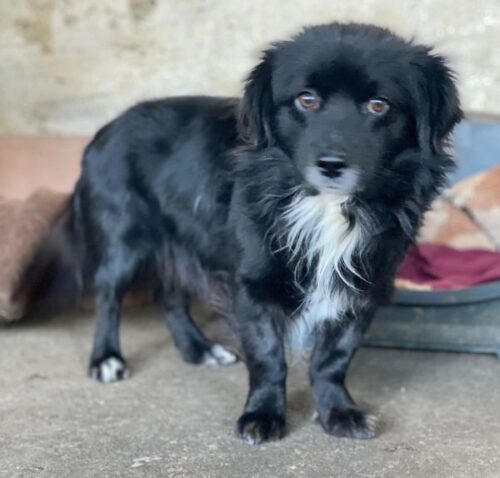 Mochi hat eine sehr angenehme Größe, die ihn zu einem idealen Begleiter im Alltag macht – weder zu groß noch zu klein. Sein schwarzes Fell wird durch die weiße Schnauze und die weiße Brust ergänzt und verleiht ihm ein besonders liebenswertes Erscheinungsbild.