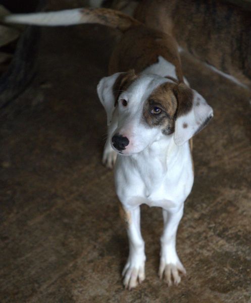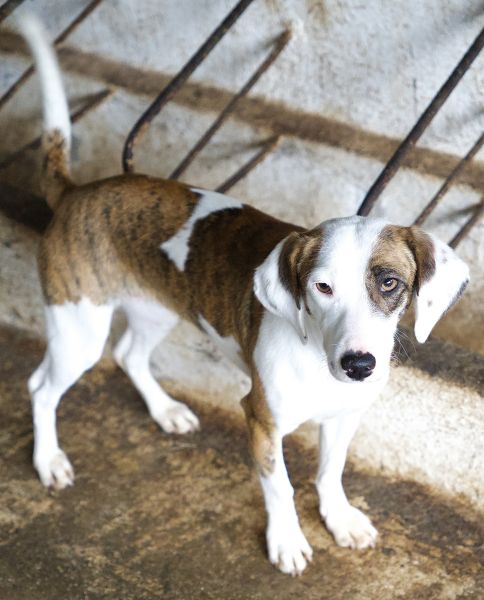Nivara ist eine zierliche, hübsche Hündin mit kurzem Fell und einer harmonischen Mischung aus Weiß und Braun. Sie zeigt sich verträglich mit den anderen Hunden auf der Pflegestelle und ist Menschen gegenüber freundlich, aber zurückhaltend. Mittlerweile konnte sie sich jedoch schon ein wenig öffnen.