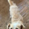 Er ist etwa mittelgroß und hat ein weiß-beiges Fell. Sein Gesicht hat einen frechen, aber sehr liebevollen Gesichtsausdruck. Peppi wird eher klein bleiben.