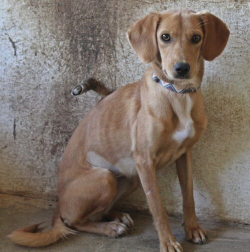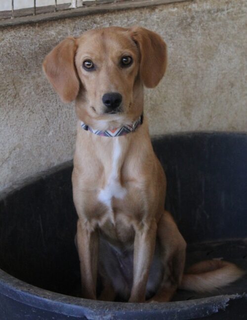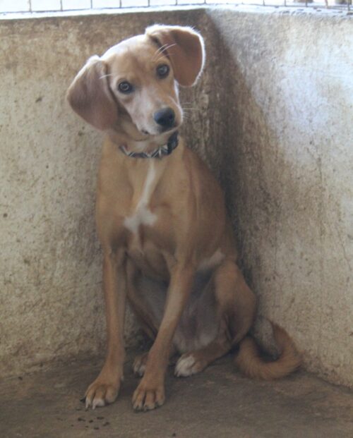 Eins ist sicher, Shiva ist eine bildschöne Hündin. Mit ihrem haselnussbraunen Fell, welches an der Brust einen weißen Fleck aufweist, den braunen Augen und ihren langen Ohren hat sie es uns sofort angetan. Doch das ist bei weitem noch nicht alles: Shiva zeigt sich vor Ort verträglich und scheint mit ihren vierbeinigen Artgenossen und auch Menschen gut auszukommen. Allerdings ist sie bei Menschen zunächst noch vorsichtig und zurückhaltend und benötigt ausreichend Zeit, um Vertrauen zu fassen. Nichtsdestotrotz steckt in Shiva ein wunderschöner und liebevoller Kern. Mit viel Geduld, Zeit und Liebe, da sind wir uns sicher, wird Shiva in ihrem neuen Zuhause aufblühen und all ihre schönen Charakterzüge zeigen. Ein professionelles Training kann dabei eine sehr gute Unterstützung sein, um Shiva Schritt für Schritt Vertrauen aufbauen zu lassen und ihr die nötige Sicherheit im Alltag zu geben.
