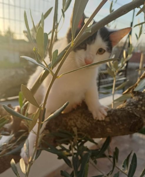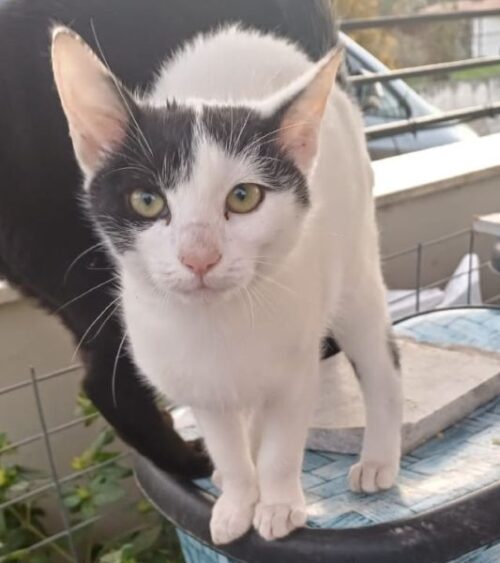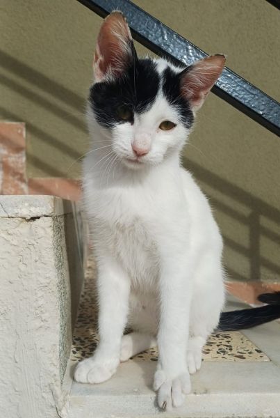 Siroka suchte sich ihre aktuelle Pflegestelle selbst aus. Als eine unserer griechischen Kolleginnen sich auf der Straße mit einer Freundin unterhielt, kam Siroka miauend auf sie zugelaufen. Doch nicht nur das! Siroka kletterte ihr bis auf die Schulter und wollte nicht mehr gehen. Daher nahmen wir sie auf. Nun wartet sie geduldig auf ihre Herzensmenschen.