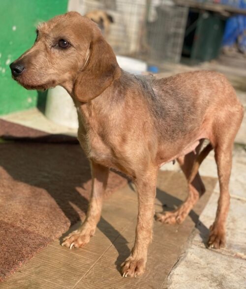 Diese kleine Hundedame wurde von unserer Helferin Anastasia allein in einem Dorf gefunden. Sie befand sich in einem besorgniserregenden Zustand – war abgemagert, sehr verängstigt und hatte mit starken Hautproblemen zu kämpfen. Bei Anastasia konnte sie aufgepäppelt und gegen ihre Hautprobleme behandelt werden, musste nun jedoch ins städtische Tierheim von Serres/Griechenland umziehen. Dies bedeutet zunehmenden Stress für die Hunde, die es eigentlich so verdient hätten, endlich zur Ruhe zu kommen. Jeder weitere Tag im Tierheim ist ein verlorener Tag für diese tolle Hündin, die bereits so viele Hürden überwinden musste. Wir wünschen uns daher, zeitnah ein richtiges Zuhause für Tharu zu finden, damit all die Mühe nicht umsonst war und sie doch noch erfährt, was es bedeutet, geliebt zu werden.