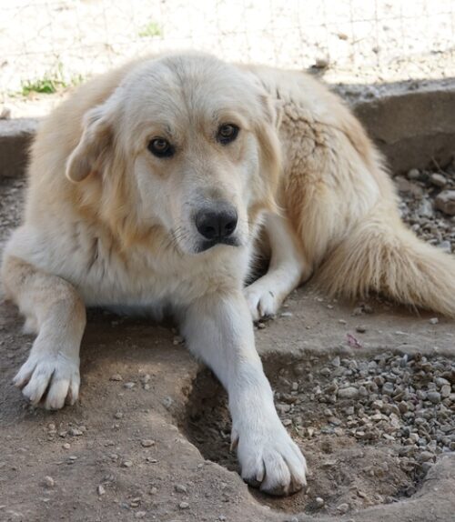 Aufgrund von Tinos Größe und Optik kann es sich bei ihm um einen Herdenschutzhund-Mischling handeln. Gerne informieren wir Sie über alle Besonderheiten dieser großartigen Tiere.