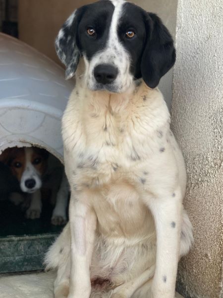 Vor Ort zeigt sich Utha als eine freundliche, liebe und verspielte Hündin. Auch äußerlich ist Utha eine echte Schönheit. Neben dem weißen Fellkleid wird ihr Kopf von einer schwarzen Maske gezeichnet, die sie unverwechselbar macht. Zusätzlich hat Utha wunderschöne braune Augen und süße Schlappohren. Mit ca. 55 cm Schulterhöhe hat Utha eine optimale Größe erreicht. Denken Sie nicht auch, Utha wäre Ihre perfekte Begleiterin auf vier Pfoten? Mit Sicherheit würde sie sich nach einer angemessenen Eingewöhnungszeit sehr über den gemeinsamen Besuch einer geeigneten Hundeschule freuen. Wir sind sehr gespannt auf ihre Entwicklung und freuen uns jetzt schon, von Ihnen zu hören. Lassen Sie uns gerne eine Selbstauskunft auf unserer Homepage zukommen, um Utha bald persönlich kennenzulernen.