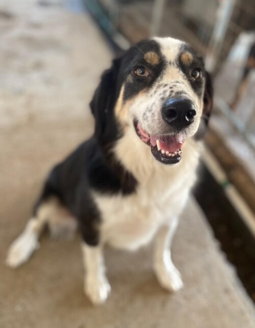 Xanda steht ihren Geschwistern in puncto tollem Aussehen wirklich in nichts nach. Ihr bildhübsches Gesicht mit weißer Blesse, schwarzer Maske und den braunen Akzenten mit „Sommersprossen“ fällt sofort auf. Xanda hat ein flauschiges Fellkleid, das zum Streicheln einlädt. Streicheln ist ein gutes Stichwort, denn das ist etwas, was die charmante Hundedame wirklich klasse findet. Ihre Pflegerinnen und Pfleger vor Ort beschreiben sie nämlich als verschmuste und liebe Hündin. Nur leider bleibt aufgrund der Vielzahl der Hunde, die versorgt werden müssen, kaum Zeit für solche Zuwendungen. Mit ihren Artgenossen versteht sich Xanda aktuell gut und spielt auch hin und wieder gern mit ihnen. Jetzt fehlt der potenziellen Traumhündin nur noch die Fahrkarte für die große Reise in ein glückliches Hundeleben bei verantwortungsbewussten Menschen, die die Zeit und Geduld mitbringen, die es braucht, um einen Hund zu erziehen. Die junge Hündin muss noch eine Menge lernen, aber mit einer souveränen Führung wird sie das sicher gut meistern. Auf ausgiebige Schmuseeinheiten und gemeinsames Spielen freut sie sich ebenfalls, denn das kommt im Tierheim viel zu kurz. Wenn Sie sich in die tolle Xanda verliebt haben, zögern Sie nicht, uns Ihre Anfrage zu schicken.