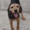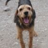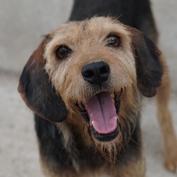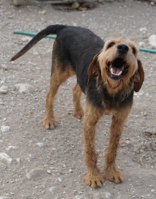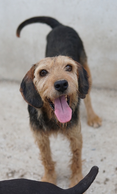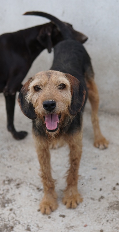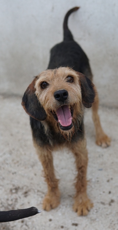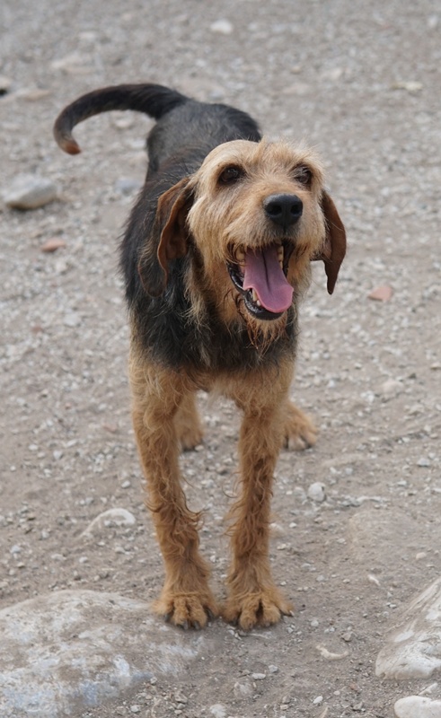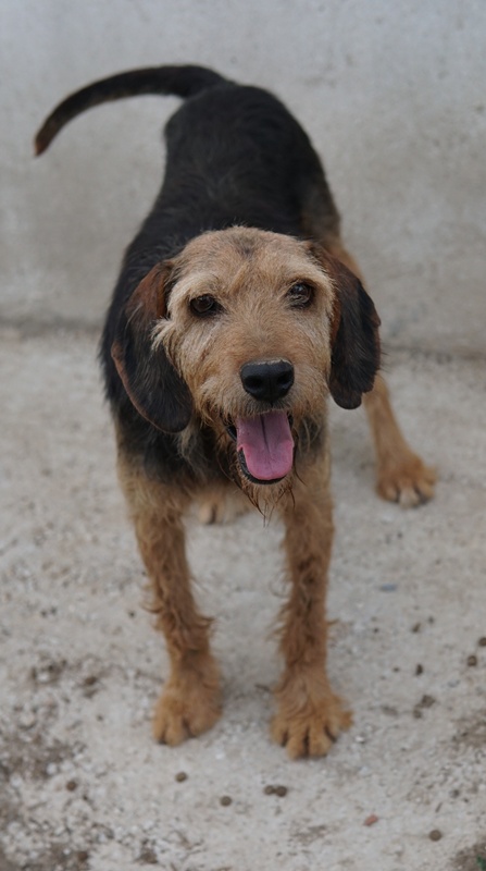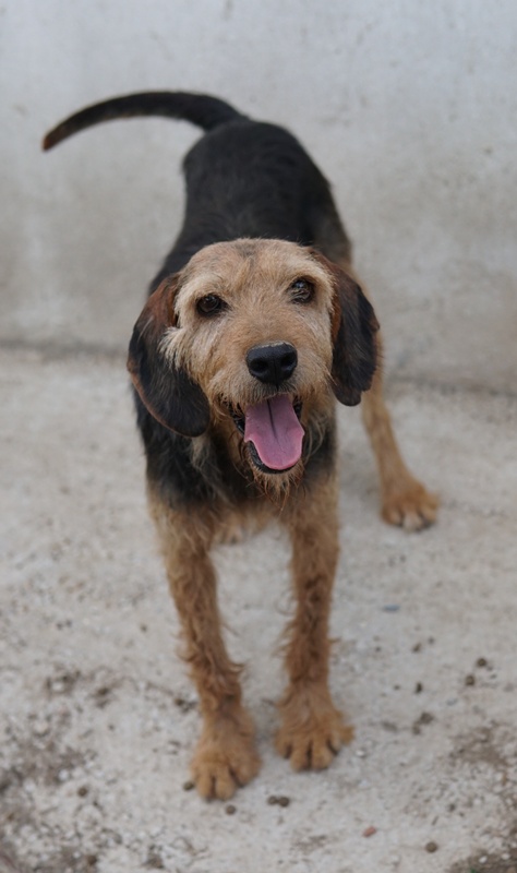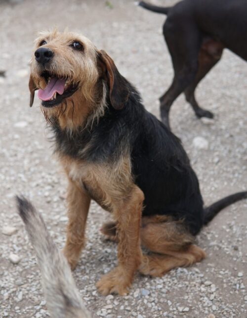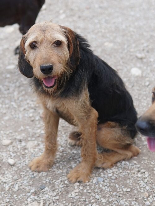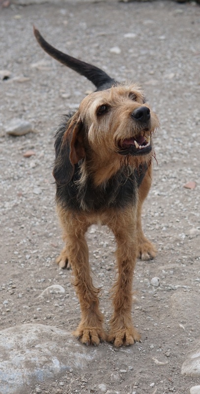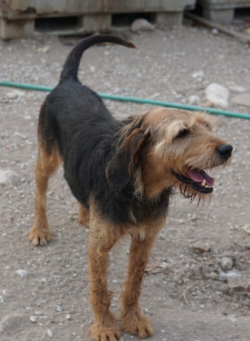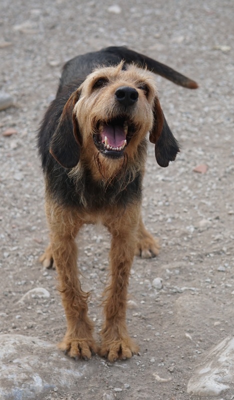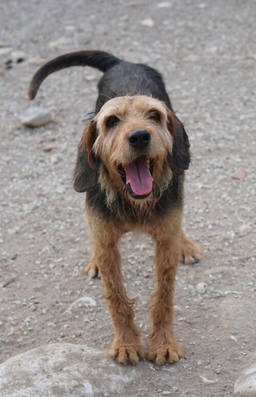 Yasko ist ein braun-schwarzer, mittelgroßer Jagdhundrüde mit drahtigem Fell. Er hat ein süßes Bärtchen und lange Schlappohren. Unsere ehrenamtlichen Helfer vor Ort beschreiben Yasko als einen sehr freundlichen, aufgeschlossenen und verträglichen Rüden. Er ist ein total lieber Hund, der stets den Kontakt zum Menschen sucht, ohne dabei zu stürmisch zu sein. Niemand weiß, ob er jemals ein Zuhause hatte und das Leben im Haus kennengelernt hat. Deshalb wünschen wir uns für Yasko ein Zuhause mit Garten, um ihm die Eingewöhnungsphase zu erleichtern. Zudem wünschen wir uns für ihn eine Familie, die Freude an der Erziehung eines Hundes hat und ihn auch jagdhundgerecht auslasten möchte – etwa durch Suchspiele.